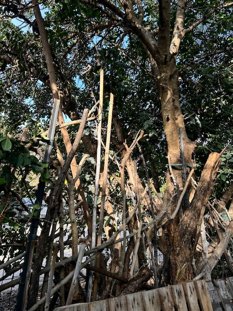 Our fence no longer looks attractive; anyone venturing near here would think this is the home of paranoid, insane people. This place could be a set for a horror movie: certainly not an inviting, hospitable home.